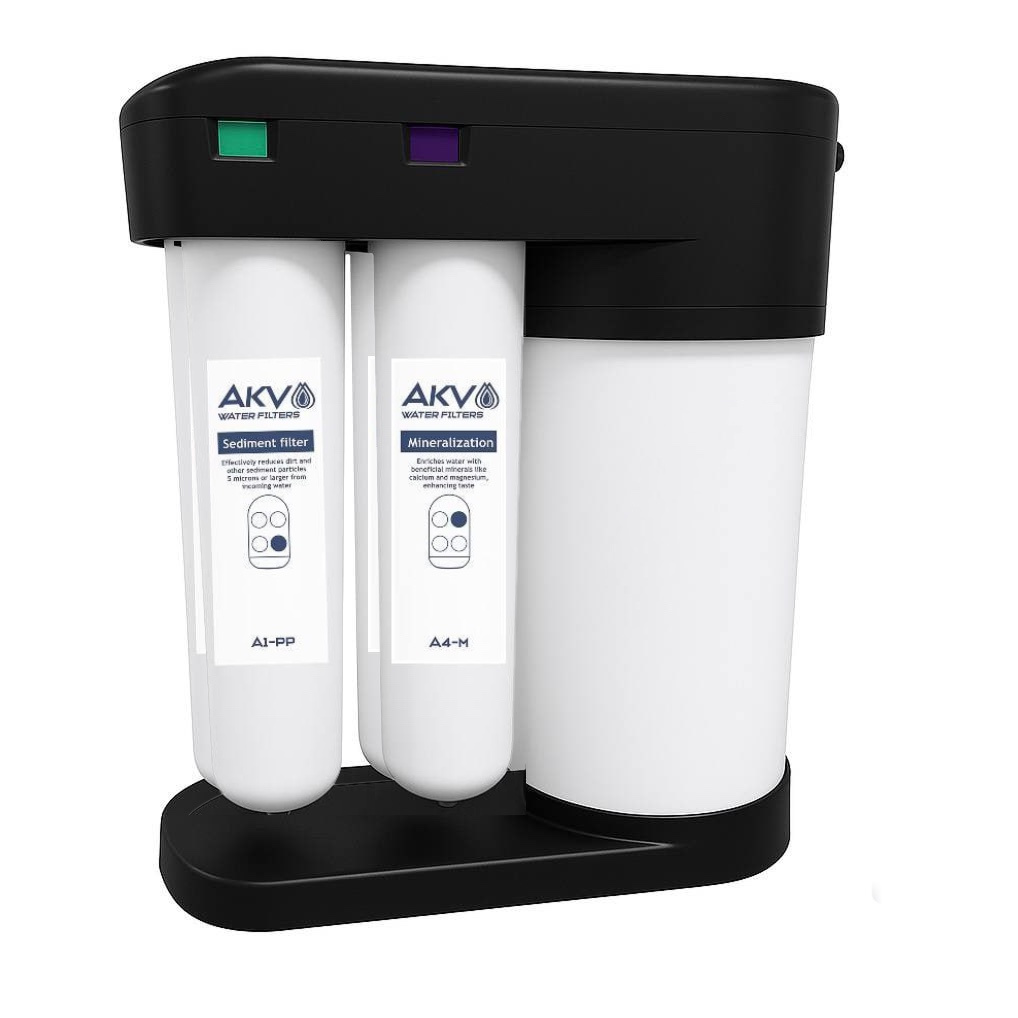 The AKV A1-PP polypropylene-based cartridge provides mechanical filtration down to 5 microns, extending the life of subsequent cartridges. Replacement is required every 3-6 months (depending on the initial water quality).